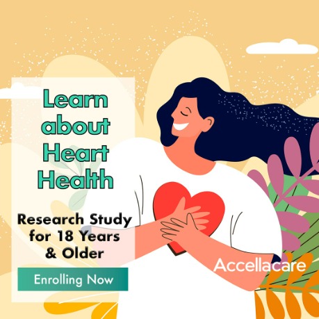 Accellacare has multiple options available to participate in trials for treatments that aim to prevent heart diseases and promote cardiovascular health. Eligible participants will receive study-related care and medication at no cost.